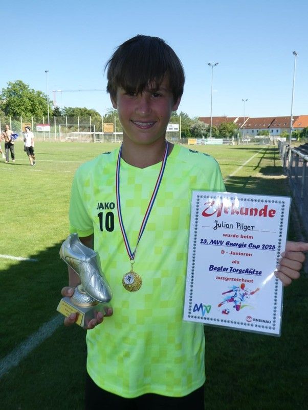 Am vergangenen Wochenende nahm unser Team bei hochsommerlichen Temperaturen an einem Fußballturnier in Reilingen teil. Bei strahlendem Sonnenschein und heißen 30 Grad ohne Schattenplätze bewiesen unsere Jungs nicht nur fußballerisches Können, sondern auch echte Ausdauer und Teamgeist. Starker Auftakt gegen FV Neuthard Im ersten Spiel traf unser Team auf den FV Neuthard. Von Beginn an spielten die Kinder mutig nach vorne und konnten mit schönen Kombinationen überzeugen. Am Ende stand ein verdienter 5:2-Erfolg auf dem Spielbericht – ein gelungener Start ins Turnier! Spannendes Duell gegen FV Brühl Gegen den FV Brühl entwickelte sich eine spannende Partie. Unsere Mannschaft kämpfte bei glühender Hitze um jeden Ball und konnte sich durch große Einsatzbereitschaft einen verdienten 4:3-Sieg sichern. Sieg gegen den Gastgeber SC 08 Reilingen Im dritten Spiel wartete der Gastgeber SC 08 Reilingen. Trotz der mittlerweile extremen Temperaturen ließ unser Team nicht nach. Mit einer konzentrierten und geschlossenen Leistung gelang ein souveräner 2:0-Erfolg. Knappe Niederlage gegen TSG Lützelsachsen 1 Im letzten Spiel gegen die starke erste Mannschaft der TSG Lützelsachsen machte sich die Hitze und der Kräfteverschleiß bemerkbar. Trotzdem zeigten unsere Jungs noch einmal großen Kampfgeist und erzielten drei schöne Treffer. Am Ende stand ein 3:5 – eine Niederlage, die der tollen Gesamtleistung keinen Abbruch tat. Fazit Drei Siege aus vier Spielen bei brütender Hitze – eine großartige Leistung unserer Mannschaft. Die Spieler trotzten den Bedingungen, gaben alles und wurden am Ende mit einer wohlverdienten Medaille belohnt. Ein großes Lob an das gesamte Team. Wir sind stolz auf euch!